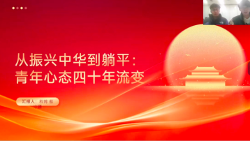 分享感悟:此次分享深刻揭示了当代青年在“内卷”与“躺平”之间的精神困境,既有现实的焦虑,也有对未来的迷茫。它时刻提醒着,个人的成长不能脱离于时代与国家的土壤。国家在现代化进程中提供了广阔的舞台,关键在于能否主动提升自我、找准方向、把握机会。雷霆、李悦等榜样告诉我们,真正的价值实现来自于将个人理想融入国家发展,在奉献中成就自我。作为当代青年的一份子,我们应当拒绝消极与漂泊,树立远大理想,坚持终身学习,勇于担当责任。唯有如此,才能在时代的浪潮中锚定方向,与祖国共同成长,实现个人与国家的“双向奔赴”。