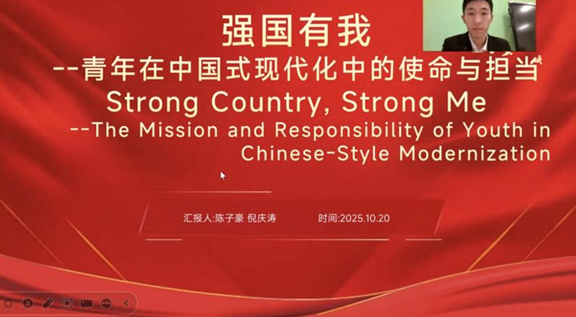 主题内容:“强国有我” 是青年对国家的庄严承诺,与中国式现代化的青年责任紧密相连。青年作为最积极有生气的力量,其担当奋斗是推进中国式现代化的关键。“强国有我” 激励青年在中国式现代化建设中挺膺担当,以青春之力推动国家发展,实现民族复兴。