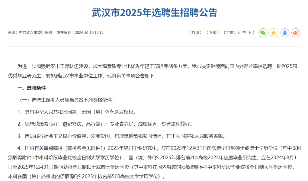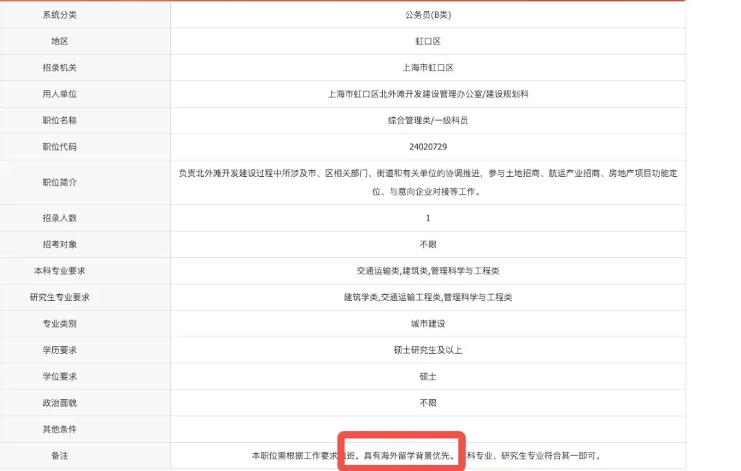 近年来,部分城市如背北京、上海、武汉等地区还陆续颁布了留学生在考公考编方面的新政策,主要面向QS排名前100和前200的高校毕业生。