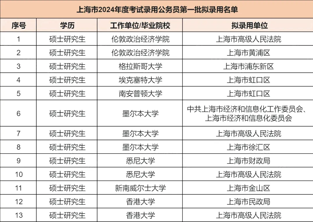 2024 年上海市公务员拟录用名单中备受关注,其中不少来自英国、澳洲、香港等地区的海归留学生。这些成功上岸的留学生们,他们的学历背景、毕业院校以及专业分布等情况,都能为后续想要考公的留学生提供参考。
