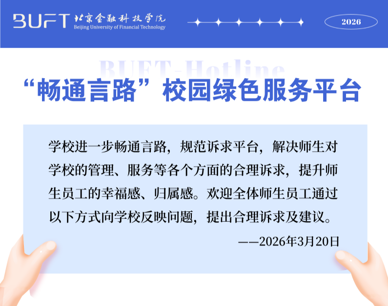 学校进一步畅通言路,规范诉求平台,解决师生对学校的管理、服务等各个方面的合理诉求,提升师生员工的幸福感、归属感,欢迎全体师生员工通过以下方式向学校反映问题。