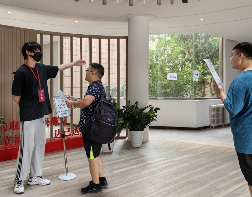 为避免考生在考点迷路、走错考场等情况出现,我校特地设立考场路标及指路牌,并有专门考务工作人员在大厅为考生提供服务。