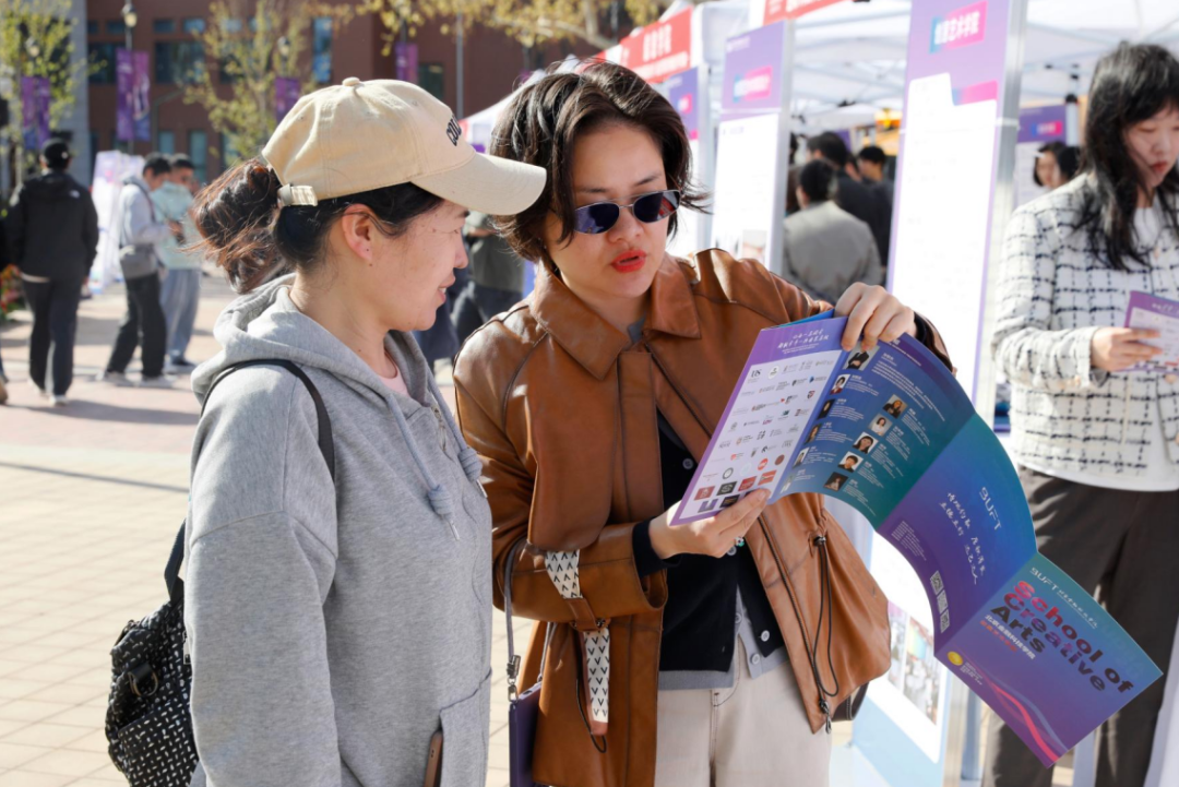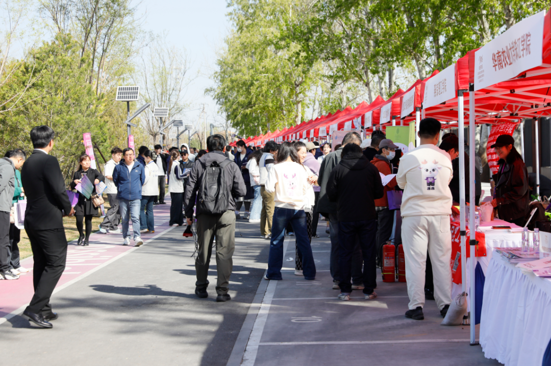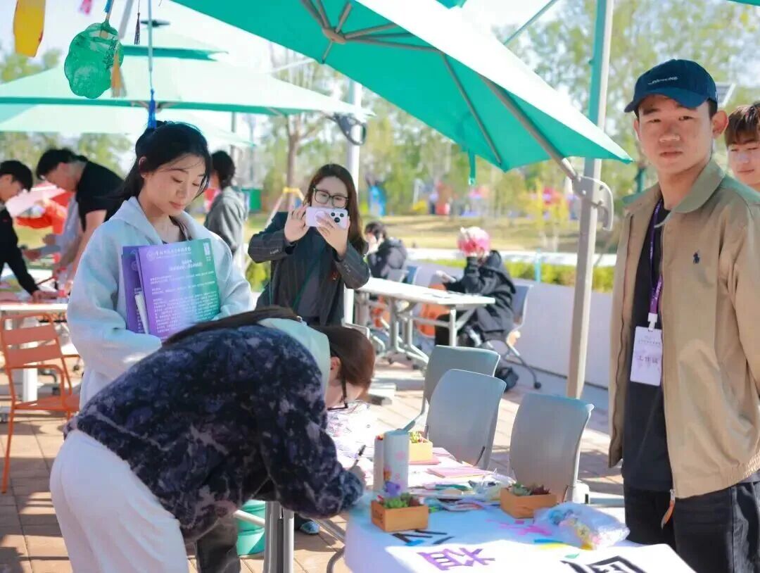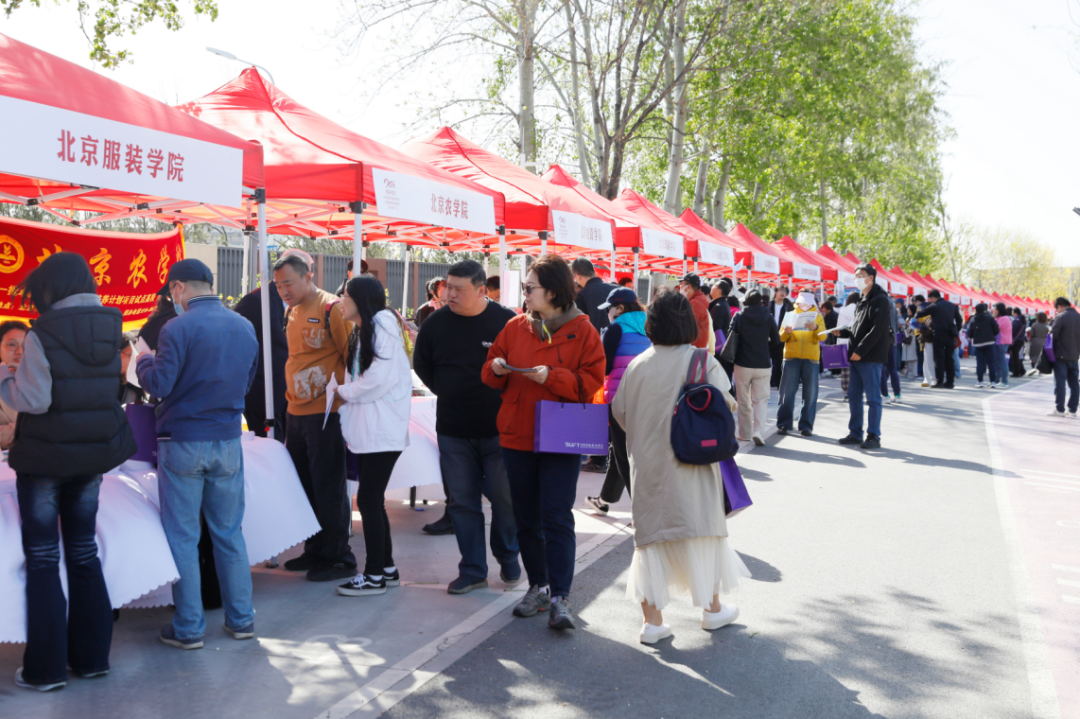 绿动公园周边,七十余所高校的展位前人头攒动。北京师范大学、南开大学、中国农业大学、中央财经大学、中国传媒大学、香港城市大学(东莞)、首都经济贸易大学,燕京理工学院、首都师范大学科德学院、上海立达学院、华南农业大学珠江学院、深圳北理莫斯科大学、西交利物浦大学等高校的招生老师,耐心解答着考生和家长关于专业特色、录取位次、就业前景等问题。