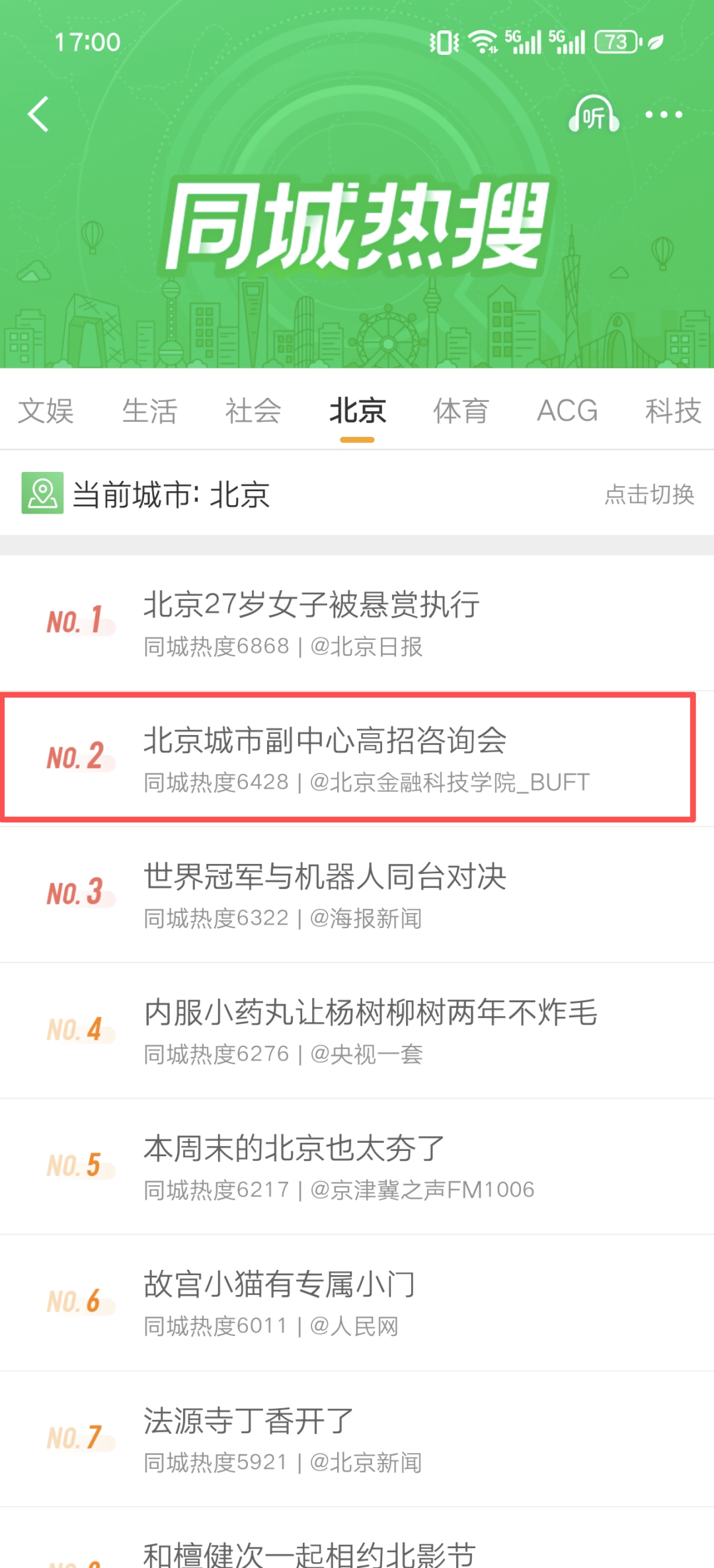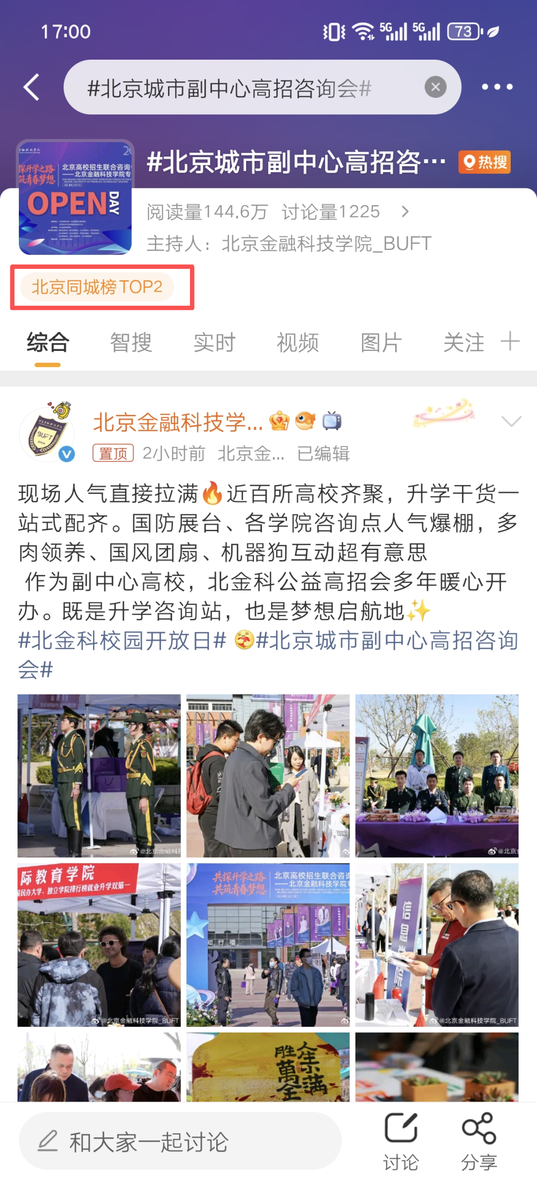 北京广播电视台、中国教育电视台、北京考试报、北京晚报、中国教育在线、中华网、新京报、通州区教委(副中心教育)等数十家媒体对此次活动进行了前期宣传和现场报道。截至发稿前,微博热搜居北京同城热搜第2位,阅读量达144.6万,热度持续增加。